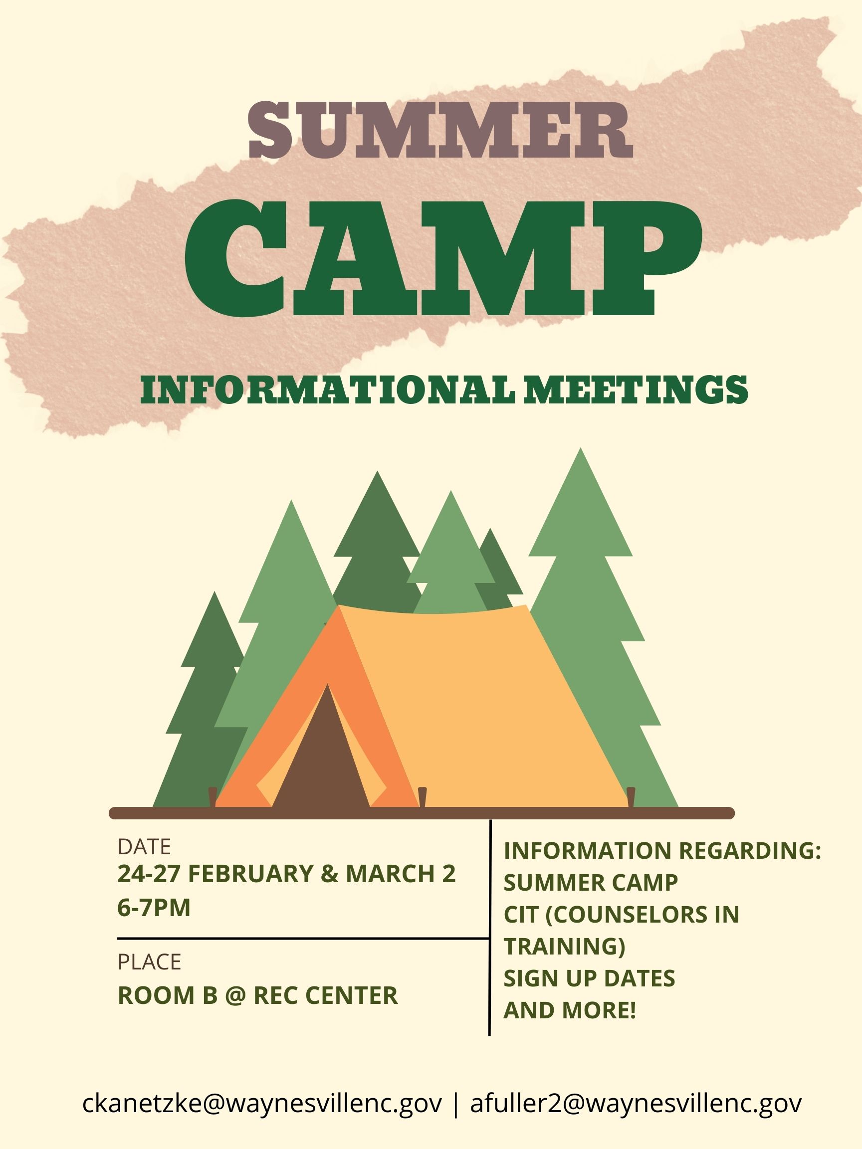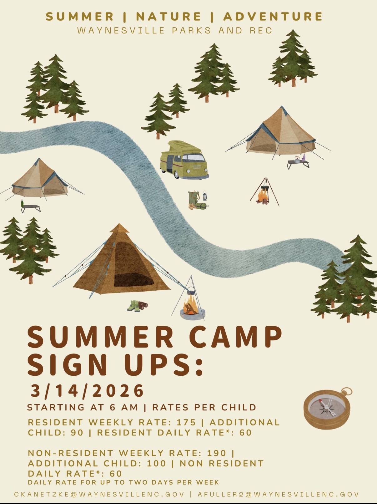 - Summer Basecamp Signups start Saturday, March 14th, at 6 am - 11 am at the Waynesville Recreation Center Front Desk. Rolling registration occurs afterwards. Payment must be in full with completed packets upon registration.